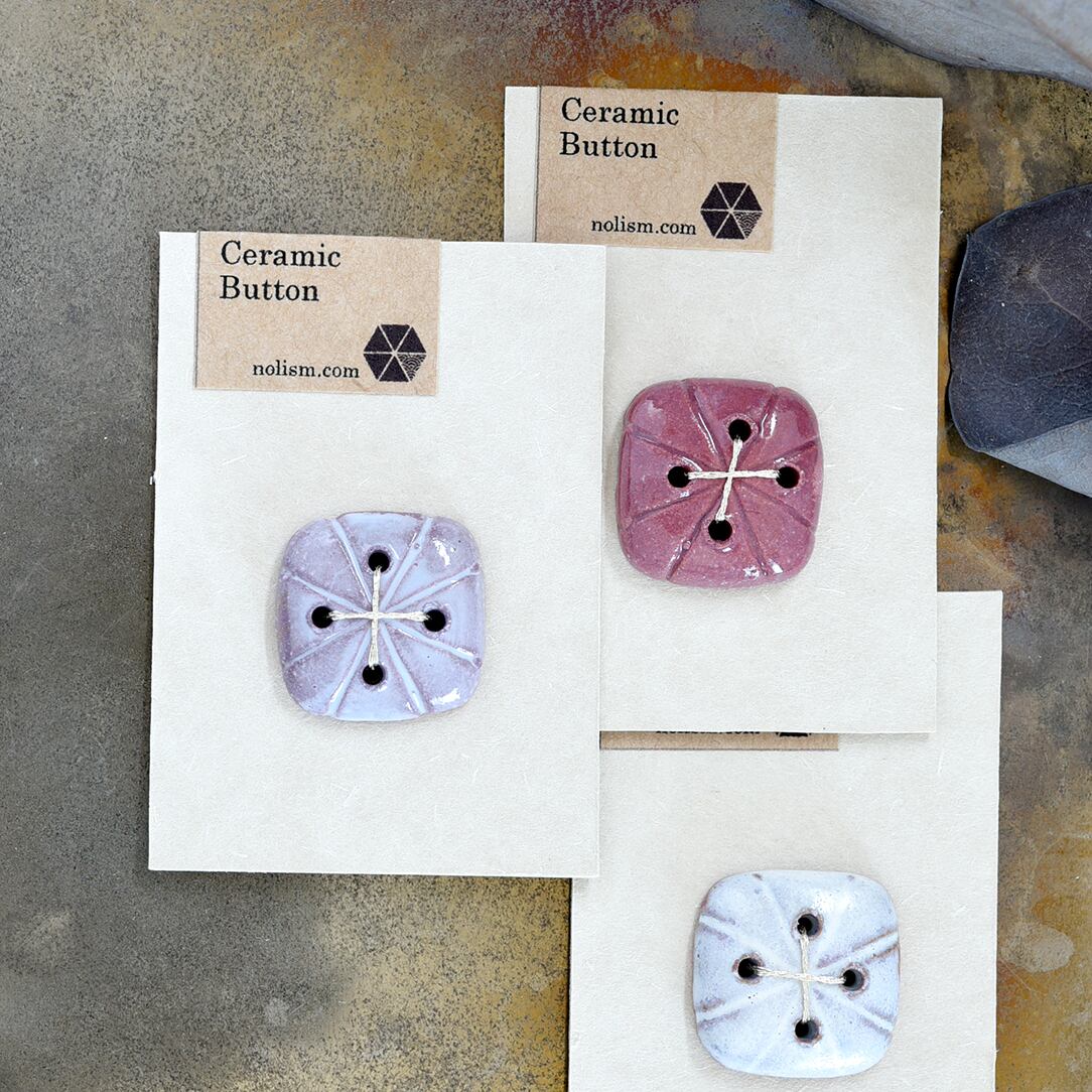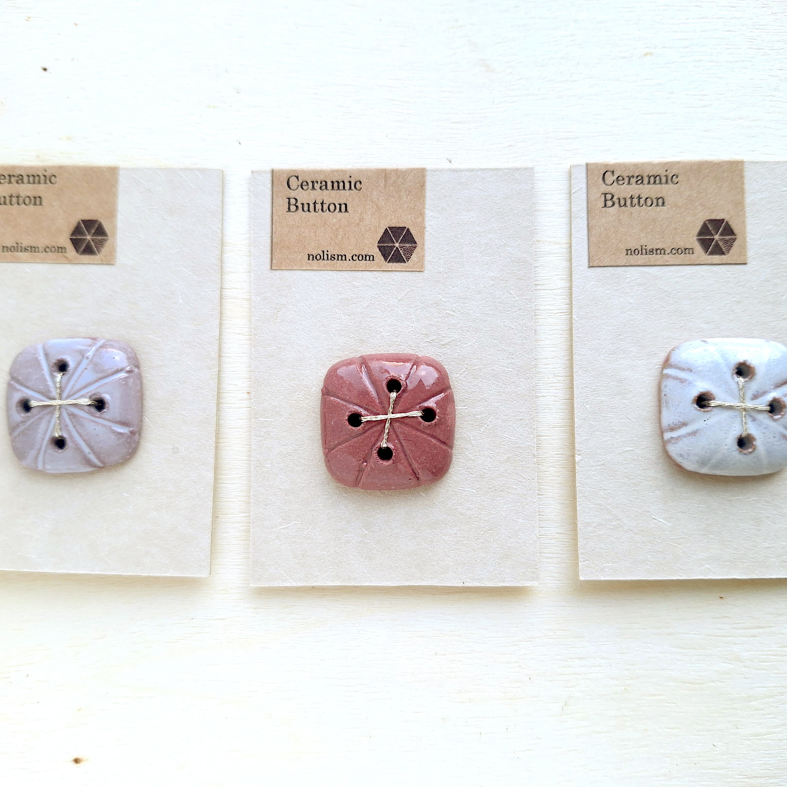 ひとつひとつ手作業で作られた、オリジナルデザインの陶磁器ボタンです。