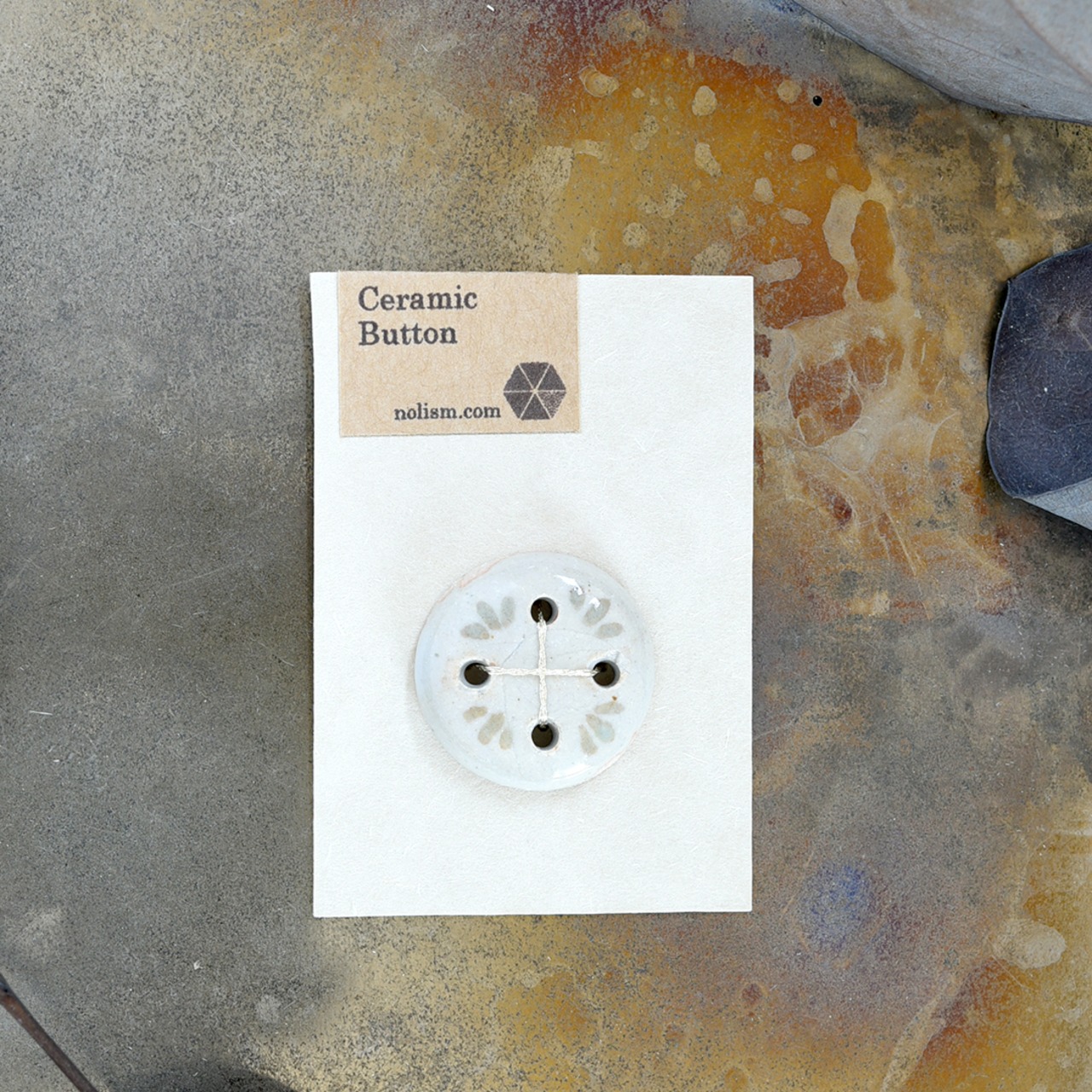 ひとつひとつ手作業で作られた、オリジナルデザインの陶磁器ボタンです。