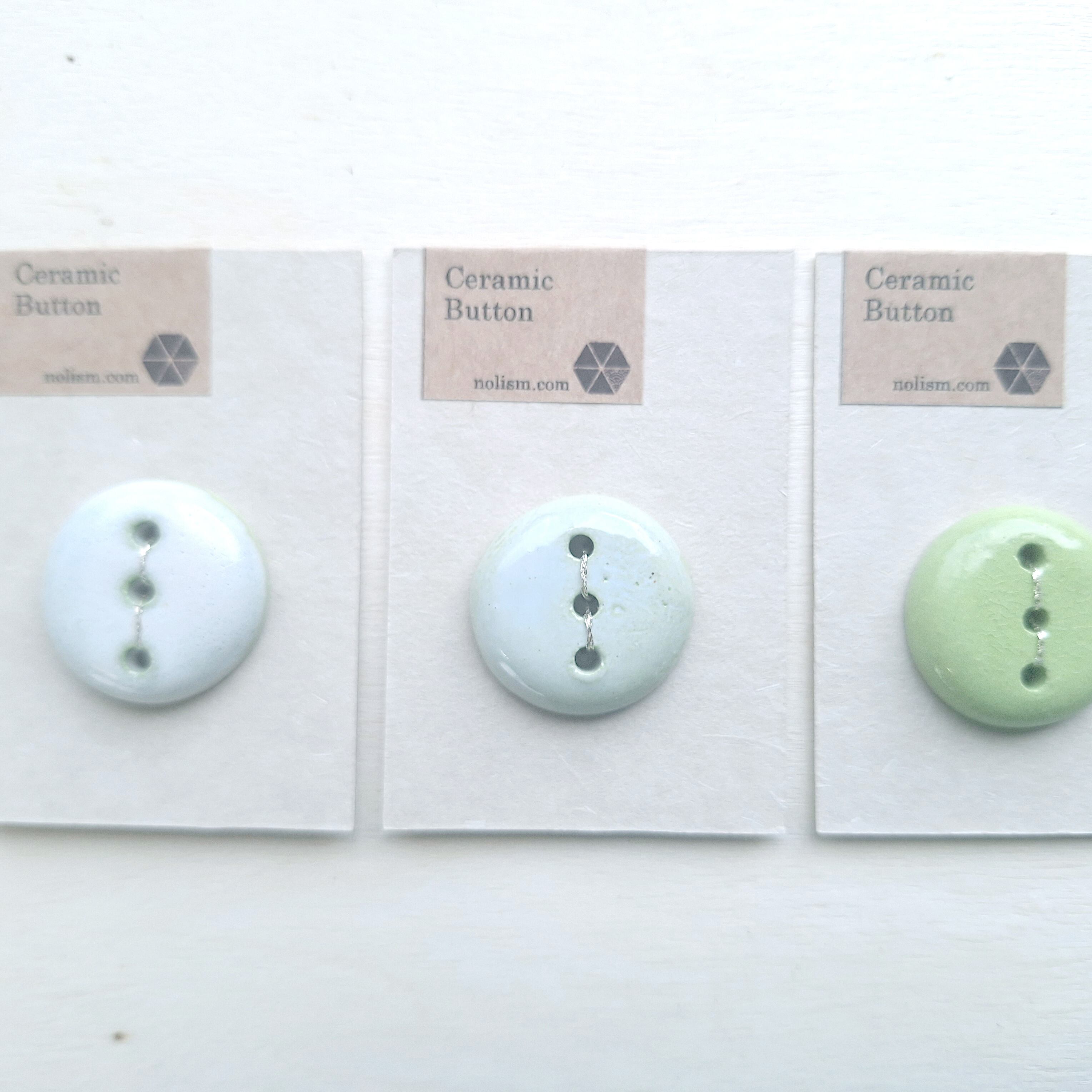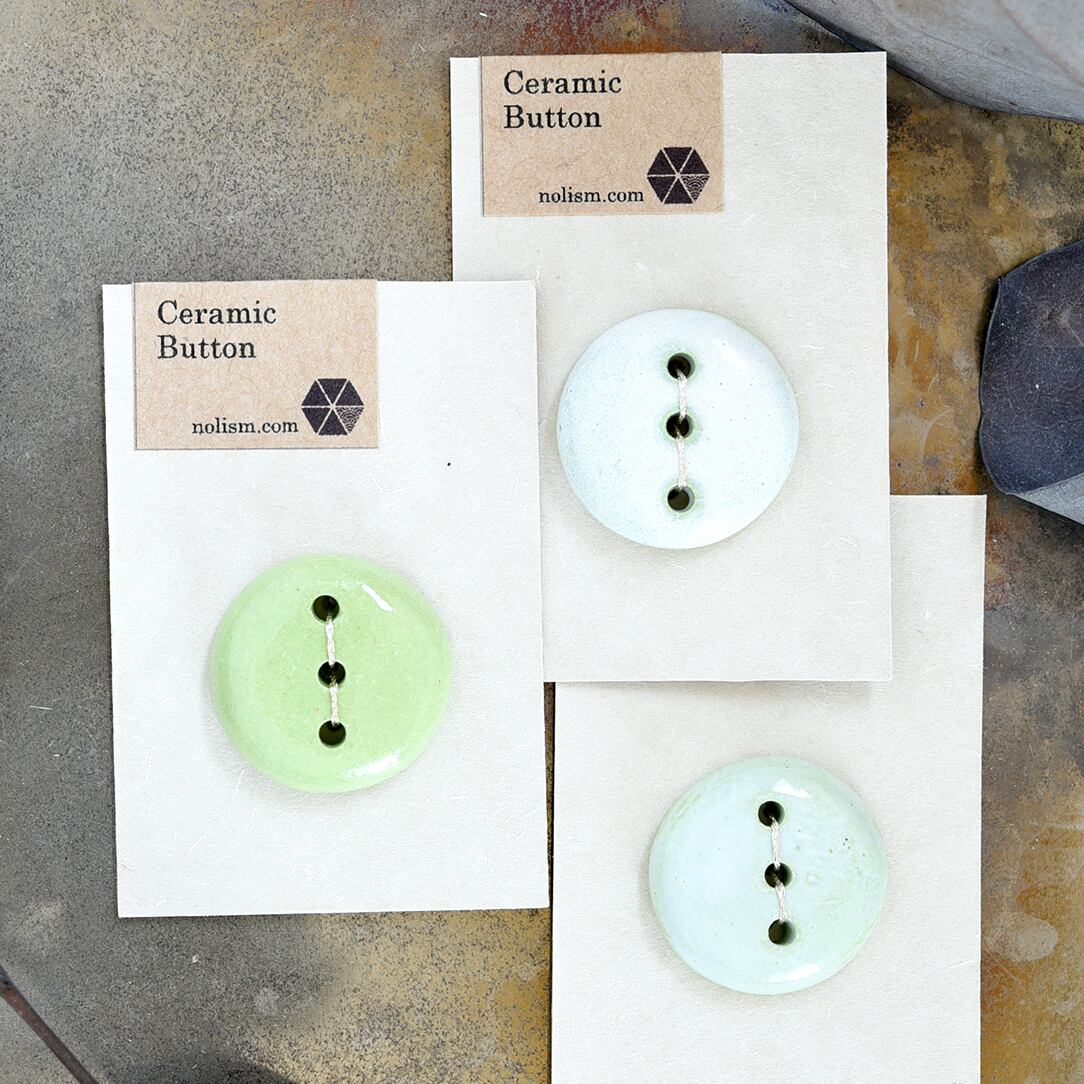 ひとつひとつ手作業で作られた、オリジナルデザインの陶磁器ボタンです。