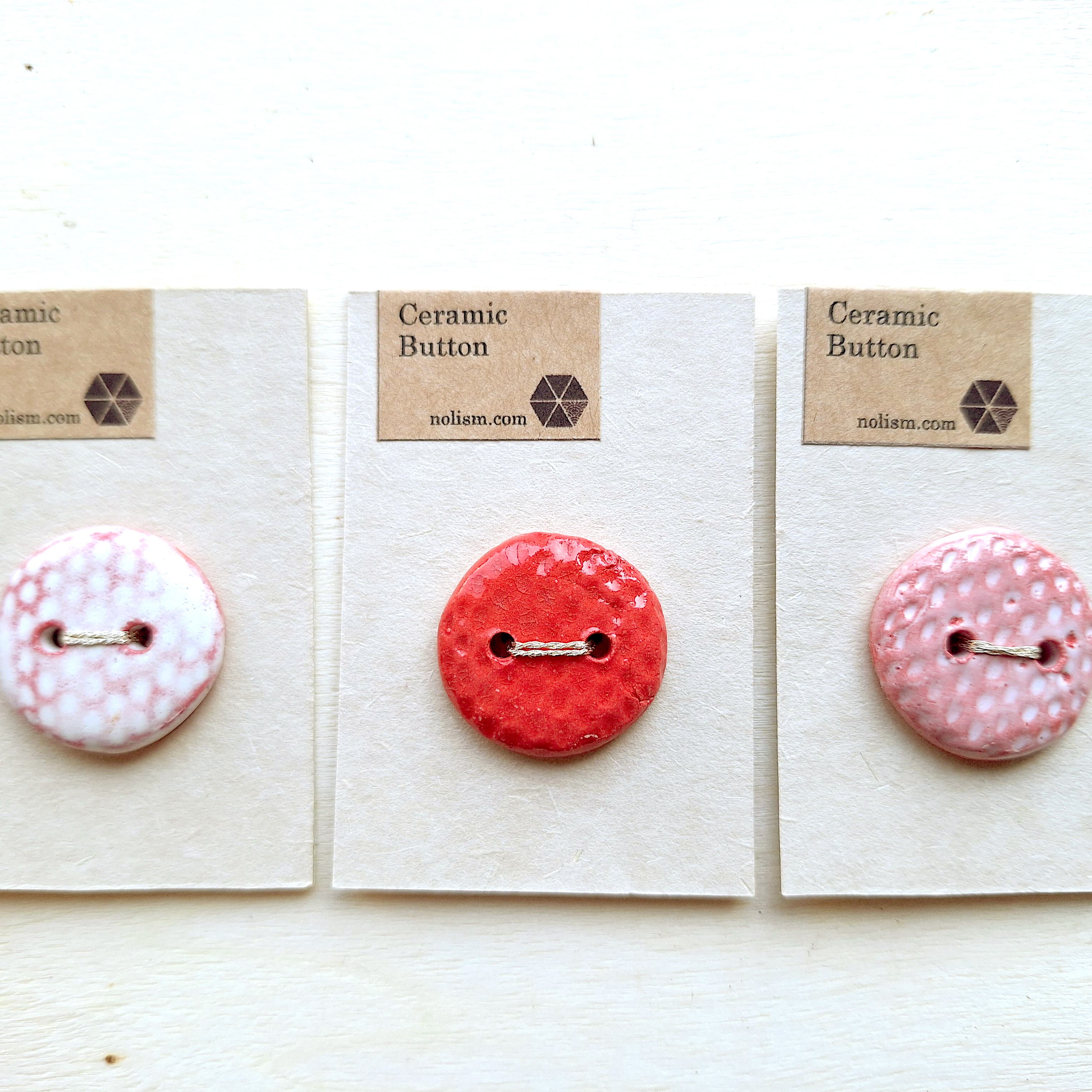 ひとつひとつ手作業で作られた、オリジナルデザインの陶磁器ボタンです。